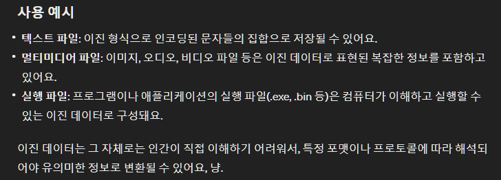 GPT의 도움을 받았는데 단순히 사람이 봤을 때 '문자' 가 아닌 데이터들을 모두 이진 데이터로 저장하는 것 같다.