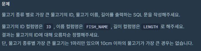 최대값과 다른 물고기들의 길이가 null이 될것이므로 is no null로 필터링 했다.